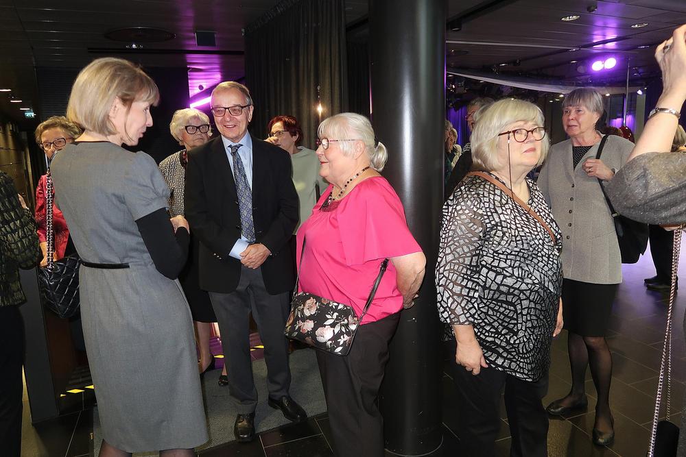 Iloinen porina ja jälleennäkemisen riemu oli käsin kosketeltavaa. Ohjelma alkoi suunnitelmien mukaan yllätyksellisellä JUHLAfanfaarilla, jonka jälkeen ANITA Wickström toivotti meidät kaikki tervetulleiksi kymmenvuotista taivaltamme muistellen - SKOOOL!