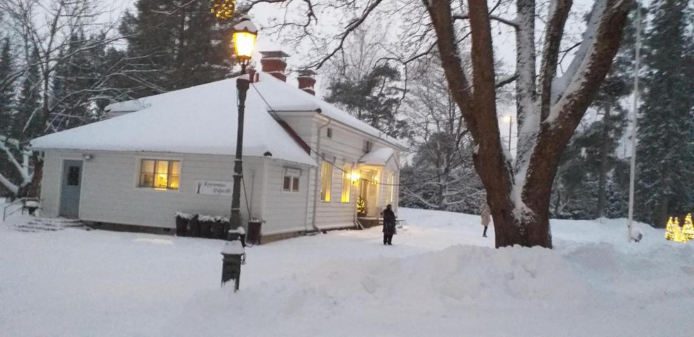 Lounaan jälkeen nousimme takaisin bussiin ja matkasimme Tuusulaan Koiramäen Pajutalliin. Pajutallissa oli jouluinen tunnelma ja ihailtavana monenlaisia pajutuotteita ja muuta lahjatavaraa. Kiertelyn ja ostosten lomassa nautimme kahvista tai teestä ja piparipullista. Pöpperöisestä kelistä huolimatta palasimme Helsinkiin Mikonkadulle aikataulun mukaisesti klo 17.00.