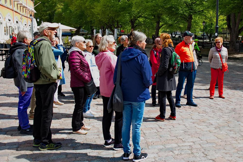 Aurinkoisena, mutta vähän viileänä tiistaina 22 Verohallinnon eläkeläistä kokoontui Turun Vähätorille aloittamaan kävelykierroksen Aurajokirannassa. Taitava oppaamme Eeva kertoili ilmeikkäästi ja mielenkiintoisesti matkan varrella esiin tulleista merkittävistä rakennuksista ja patsaista.