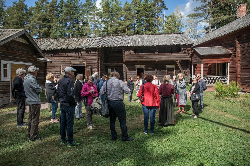 Sää oli loistava, kun 26 reippailijaa suuntasi Seurasaareen. Tunnin opastuksen jälkeen tutustuttiin ja kokeiltiin karjalaista perinnepeliä kyykkää, nautittiin retkieväät ja rupateltiin vielä "kahvia" nauttien.