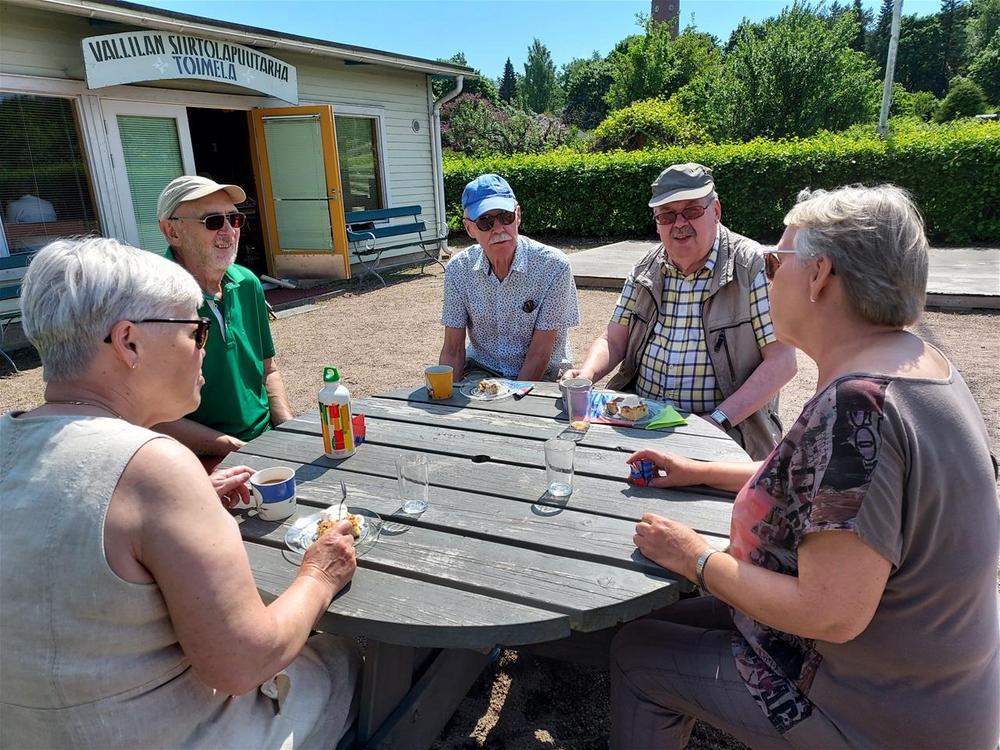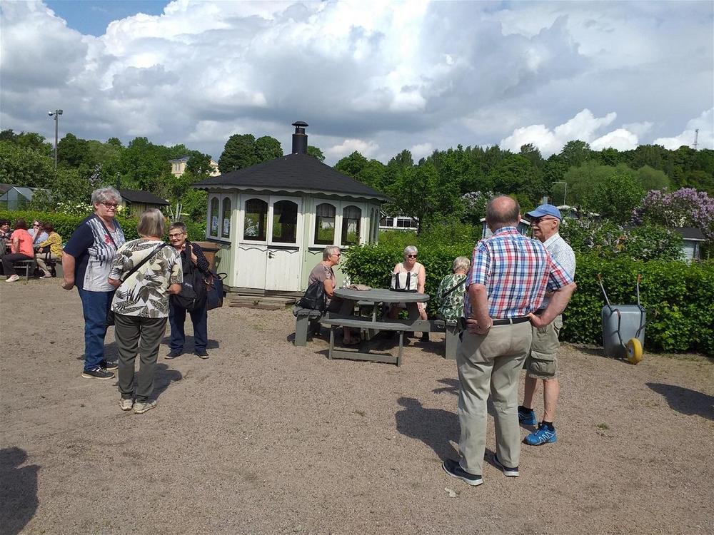 Veron eläkeläisten puutarhapäivään Vallilan siirtolapuutarhassa osallistui 31 jäsentä. Pekka Pouta oli luvannut hienon sään ja sellainen myös saatiin.