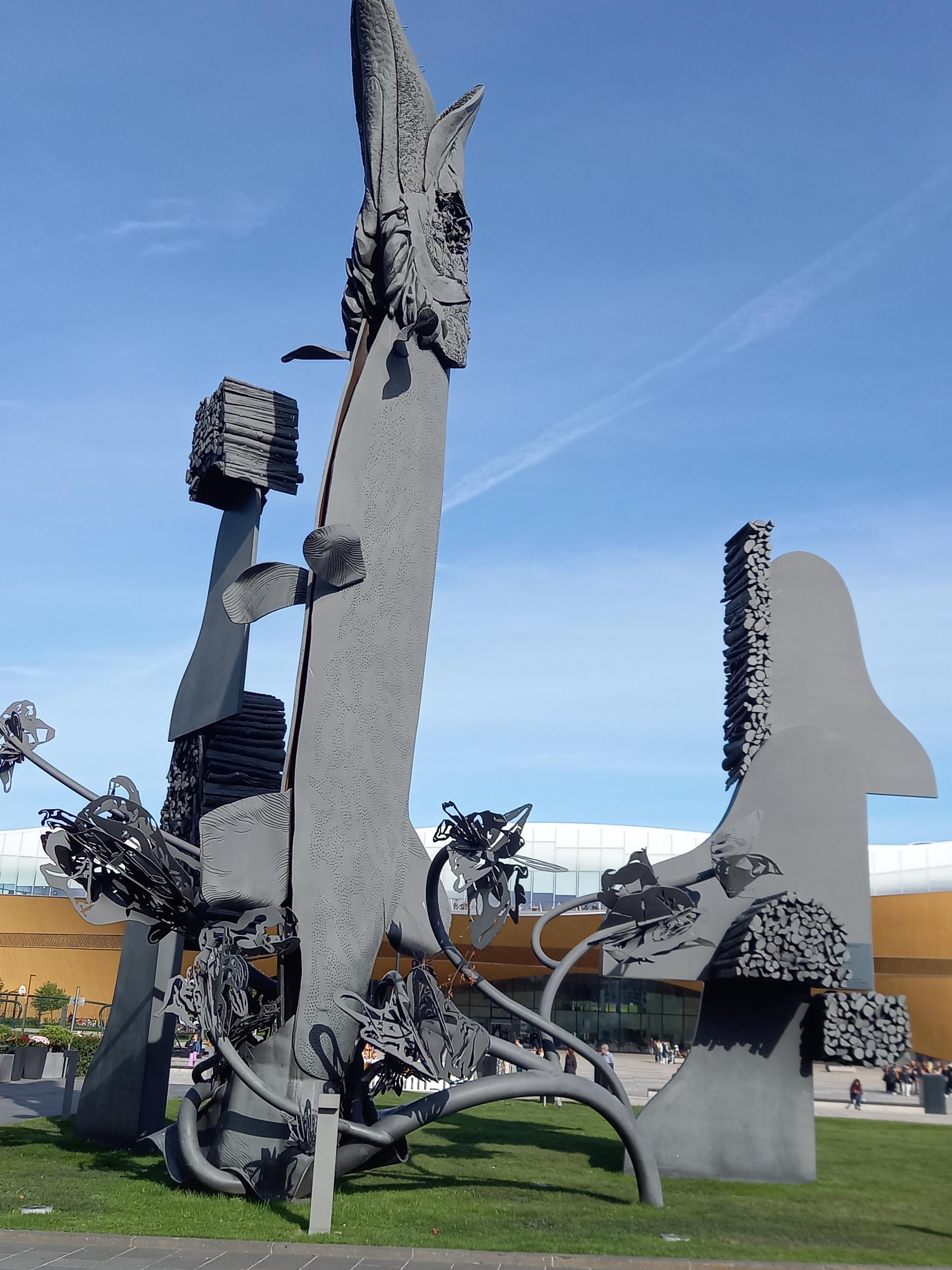 Sisäänkäynti Musiikkitalon sisäpihalta haukipatsaan kohdalta