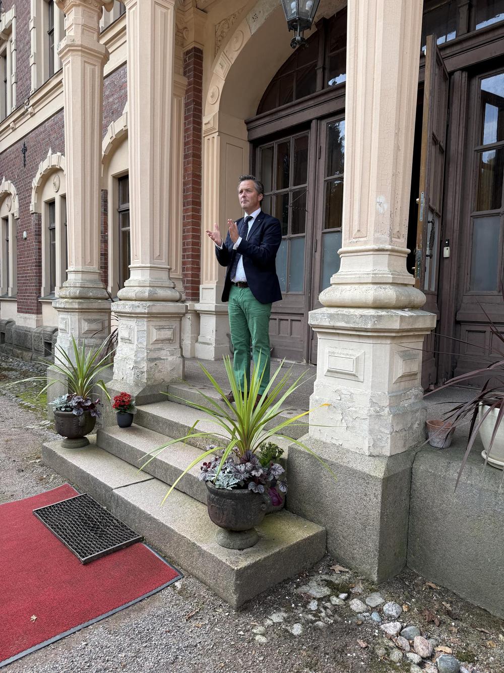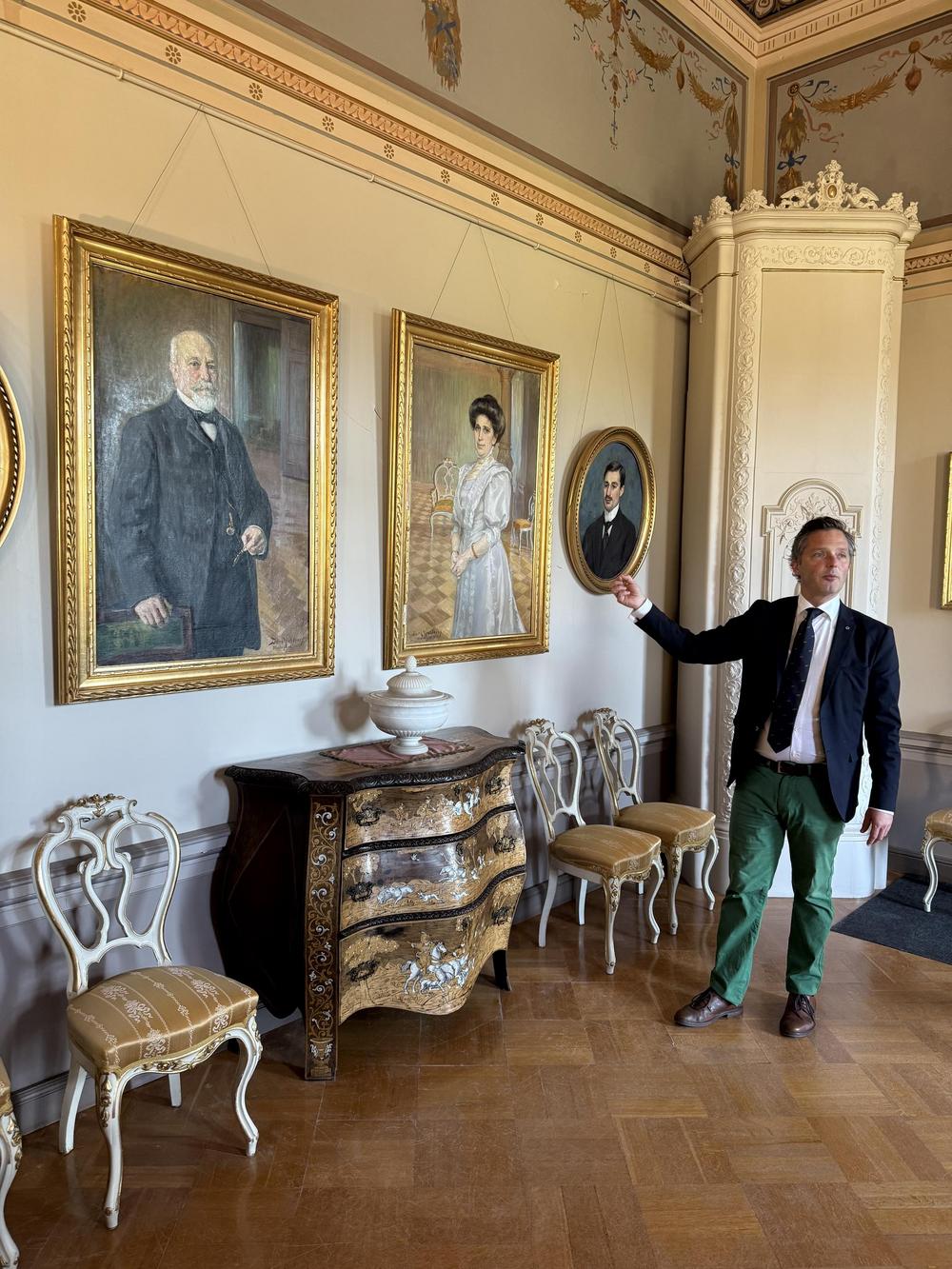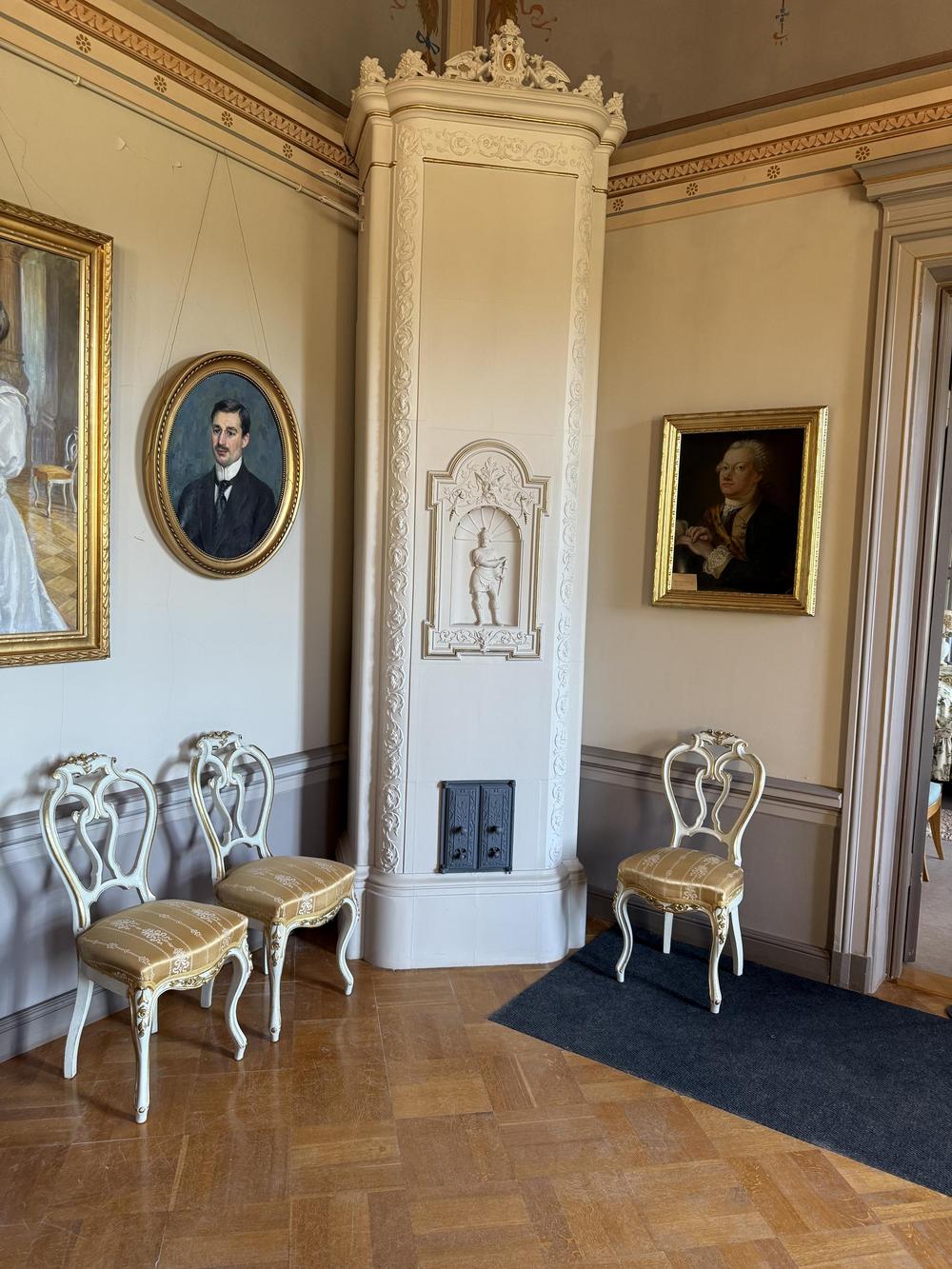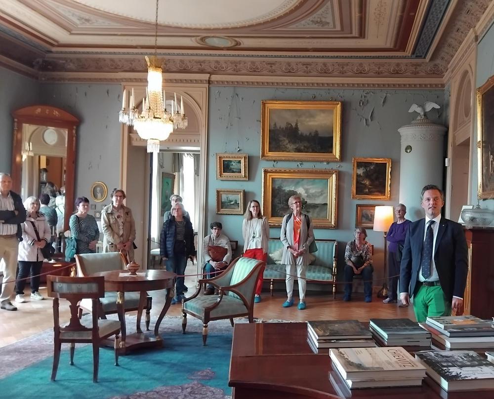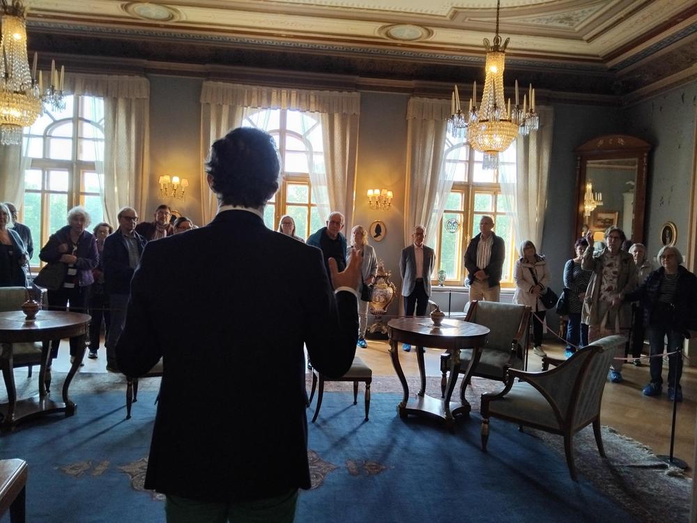 Aloitimme tutustumisen upeasta 1800-luvun lopulla rakennetusta päärakennuksesta, jossa meitä oli vastassa kartanon isäntä kreivi Henrik Creutz. Hän edustaa jo kolmattatoista polvea Creutzeja Malmgårdissa. Saimme kuulla suvun historiaa aina 1600- luvulta alkaen. Kreivi myös esitteli meille kartanon hienoja tiloja. Kartano on hänen ja hänen perheensä yksityinen koti, joten kaikkia huoneita ei päästy katsomaan.