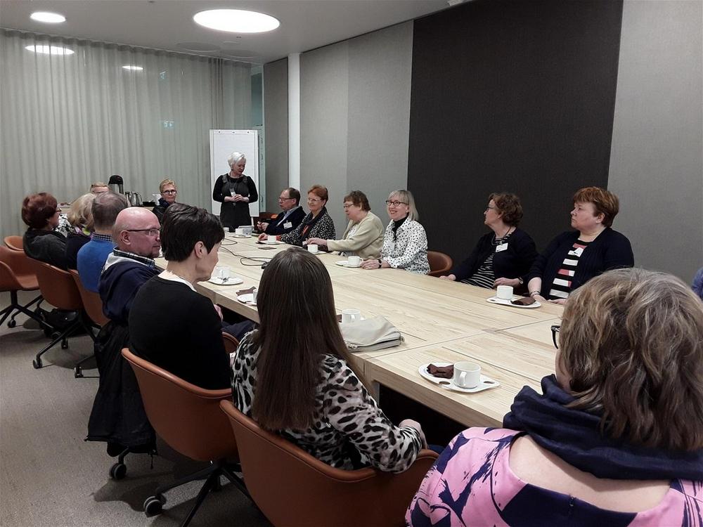 Olimme 3.12 kuuntelemassa Johanneksenkirkossa Enkellaulu kajahtaa! -joulukonserttia. Cantores Minores ja Tuomas Katajala virittivät kuulijat erinomaisella tavalla joulutunnelmaan. Kauniisti valaistussa kirkossa kuulimme tuttuja ja vähän tuntemattomiakin joululauluja. Ennen konserttia kävimme nauttimassa gruusialaisia herkkuja ravintola Purpurissa lähellä kirkkoa. Katso kuvia Teatteria Tampereella Cats musikaali 23 teatterin ystävää suuntasi 1.11. Tampereen teatteriin Cats musikaalista nauttimaan. "Kiitos loistavasta esityksestä.Viimeisen päälle yhteistyöllä hiottu esitys, tanssit, laulut, näyttämö ja tekniikka, kaikki täydet viisi pistettä!" Cats on musikaalina poikkeuksellinen, sillä siinä ei ole varsinaista tarinaa, vaan se koostuu elämää eri tavoin luotaavista runoista. Pääroolissa on rotta, joka vie esitystä vaihtelevasti ja elämänmakuisesti eteenpäin. Voit katsoa muutamia kuvia tästä MAU... AmosRex lokakuussa Tutustuimme ihkauuteen AmosRex museoon opastetuilla kierroksilla 17. ja 22.10. Molemmille käynneille osallistui 25 henkilöä teamLabin tekemä avajaisnäyttely "Massless" (vailla massaa) koostuu viidestä digitaalisesti luoduista vuorovaikutteisista esityksistä; virtaavasta vedestä, hyökyaalloista, toisiaan jahtaavista varislinnuista, valoelementeistä ja kokonaisesta ekosysteemistä. Teoksissaan taiteilijaryhmä tutkii ihmisen ja maailman välistä rajatonta jatkumoa haastaen tavanomaisia käsityksiä taiteesta ja tekijyydestä. Voit katsoa kuvia tästä linkistä sekä videoita tästä ja tästä. Eduskuntatalossa 1.10. Vierailu Eduskuntaan 1.10.2018 Tutustuimme 1.10.2018 uudistettuun upeaan Eduskuntataloon opastetulla kierroksella ja sen jälkeen tapasimme Verojaoston puheenjohtajan, kansanedustaja Esko Kivirannan ja valiokuntaneuvos Maarit Pekkasen työympäristössään. Opastetulle kierrokselle meitä osallistui 25 jäsentä. Kierroksen oppaan johdolla saimme tutustua eduskuntatalon saneerattuihin tiloihin. Kuulimme myös eduskuntatalon historiasta ja talossa olevasta taiteesta. Opastuskierros päättyi yleisölehterille, jonne saapuneiden Esko Kivirannan ja Maarit Pekkasen johdolla siirryimme Valtiovarainvaliokunnan hienoon saliin. Esittelyjen jälkeen kuulimme mielenkiintoiset esitykset lakien valmisteluprosessista ja Eduskunnan toiminnasta. Vielä kävimme verojaoston kokoushuoneessa, jossa Maarit esitteli verojaoston ajankohtaisia lakivalmisteluja. Kiitokset Esko Kivirannanlle ja Maarit Pekkaselle! Katso kuvia Amsterdam syyskuussa Amsterdamin matka Amsterdamin matkalle 25.- 28.9.2 osallistui 29 henkilöä. Matka onnistui hyvin, sääkin suosi, ei satanut, aurinko paistoi ja lämmintä oli viimeisinä päivinä 20 astetta. Yhteisenä ohjelmana oli käynti Zaanse Schansin talomuseoalueella, jossa oli mm. tuulimyllyjä, puukenkäverstas, kirkkaan värisiä puutaloja, juustola ja tietenkin matkamuistomyymälöitä. Lisäksi yhdessä kävimme kanavaristeilyllä sekä yhteisellä illallisella. Tämän lisäksi tutustuimme pienemmissä ja suuremmissa ryhmissä museoihin ja muihin nähtävyyksiin kävellen tai ratikoilla. Lukuisten kanavien lisäksi mieleen jäi erityisesti kauniit talot kanavien rannoilla sekä valtavat määrät pyöriä ja pyöräilijöitä, jotka polkivat hurjaa vauhtia eikä yhdelläkään kypärää päässään. Katso kuvia Amsterdam 2018 Seurasaareen 21.8. RETKI SEURASAAREEN TIISTAINA 21.8 Seurasaaren retkelle tuli 26 henkeä. Oppaan johdolla tutustuimme Antintaloon, Karunan kirkoon ja Karjalasta siirrettyyn Pertinotsaan ja kuulimme antoisia tarinoita senajan elämästä noissa taloissa. Opastuksen jälkeen opettelimme pelaamaan karjalaista perinnelajia kyykkää ja herkuttelemaan kolmioleivillä, grillimakkaralla ja pillimehulla. Sääkin suosi, vain pari sadekuuroa tuli kyykkäämme vilvoittamaan. Jotkut nautivat vielä kauniista merimaisemista vesibussimatkalla Seurasaaresta Kauppatorille. Nettisivuillemme on kuvia! Risteillen Tallinnaan 5.6. Tallinnaan - ja takaisin Tallinnan lounasristeilyllämme 5.6 oli mukana 49 matkaajaa. Aamulla vielä tuuli vähän pelotti, mutta ei se isossa laivassa sitten juurikaan tuntunut eikä haitannut maukkaan brunssimme nauttimista. Osa meistä osallistui Tallinnassa Viru-hotellin KGB-museokierrokseen. Siellä kuulimme tositarinaa neuvostoajoilta ja ihailimme maisemia ennen suljetusta 23. kerroksesta. Paluumatkalla ohjelma oli muilla vapaa, mutta hallitus piti kokousta. Katso kuvia RETKI VESILAHDELLE 15.5. VESILAHDEN RETKI Lähdimme Tampereelta 15.5.18 klo 10:15 tilausbussilla kohti Vesilahtea. Mukana oli 43 yhdistyksemme jäsentä. Aurinkoinen retkisää suosi meitä. Vesilahden rajalla tuli opas Satu Karvinen bussiin ja lähdimme kiertämään Klaus Kurjen tietä. Pysähdyimme tutustumaan Vesilahden kirkkoon ja Pappilaan Vesilahden kirkkoherra Harri Henttisen opastuksella. Kirkkoherralla juttu luisti ja piti vähän toppuutella, jotta pysyttiin aikataulussa, sillä nähtävää Vesilahdessa oli paljon. Laukon kartanossa söimme ensin maittavan lounaan ja sen jälkeen tutustuimme kartanoon ja sen puutarhaan kartanon rouva Liisa Lagerstamin opastuksella. Saimme paljon tietoa Laukon ja sen ympäristön historiasta. Takaisin Tampereen Keskustorilla olimme 17:50 jätettyämme junalle menijät hetkeä aiemmin pois kyydistä. Oli todella antoisa retki! ps. Katso kuvia OmaVero Nyt tiedämme, että OmaVero on jo monilta osin käytössä - kiitos Sanna Kuuri 19.4 olimme tutustumassa Verohallinnossa Vallilassa OmaVero -järjestelmän monenlaisiin hienouksiin, joita meille ilolla esitteli palvelunomistaja Sanna Kuuri. Lukuisat järjestelmät korvaava OmaVero on jo monilta osin käytössä. Henkilöverotukseen se tulee ensi vuonna. Esityksen lomassa käytiin vilkasta keskustelua mm. tunnistautumistavoista. Vierailu Eduskuntaan 12.3. Tutustuimme 12.3. uudistettuun upeaan Eduskuntataloon opastetulla kierroksella ja sen jälkeen tapasimme Verojaoston valiokuntaneuvos Maarit Pekkasen työympär